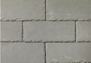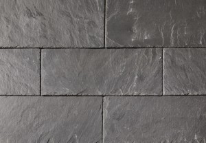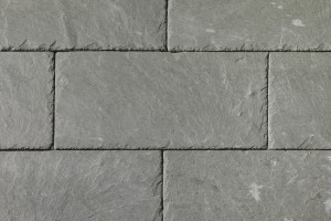 Der Schiefer ist grau mit einem feinen grünen Unterton und einer eleganten, gleichmäßigen und glatten Oberfläche mit rustikalen Kanten.