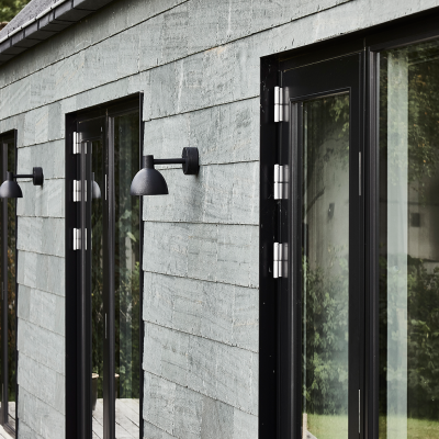 Der Spanish Green-Schiefer verleiht der Fassade einen natürlich lebendigen Ausdruck.